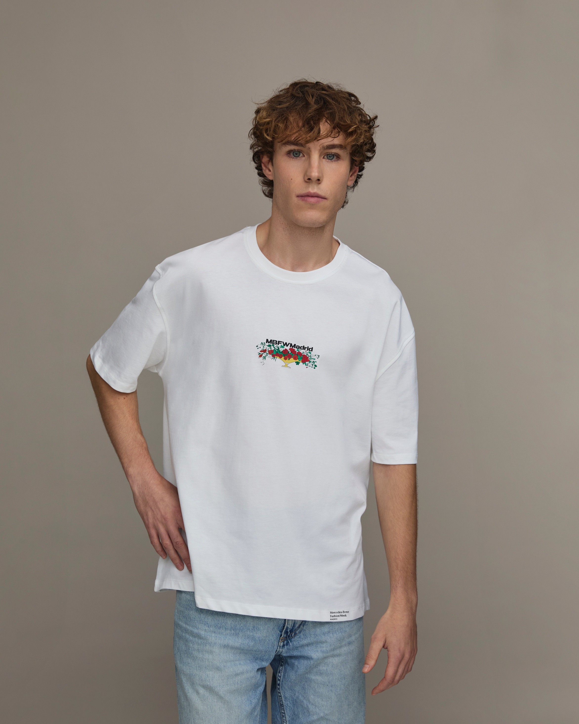 In celebration of MBFWMadrid's 40th anniversary, this oversized T-shirt is a statement of style and celebration. Made from 220gsm 100% cotton, it offers a firm and comfortable structure, ideal for those seeking a relaxed look with character.